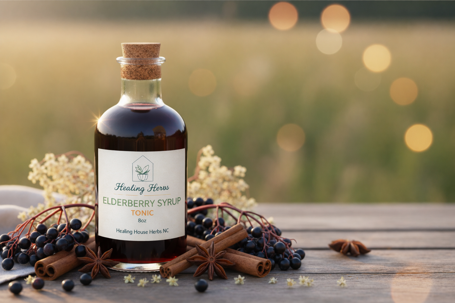 Our Elderberry Syrup is made with locally-sourced elderberries and raw North Carolina honey in small batches. No artificial ingredients, no corn syrup—just pure, potent immune support the way nature intended.